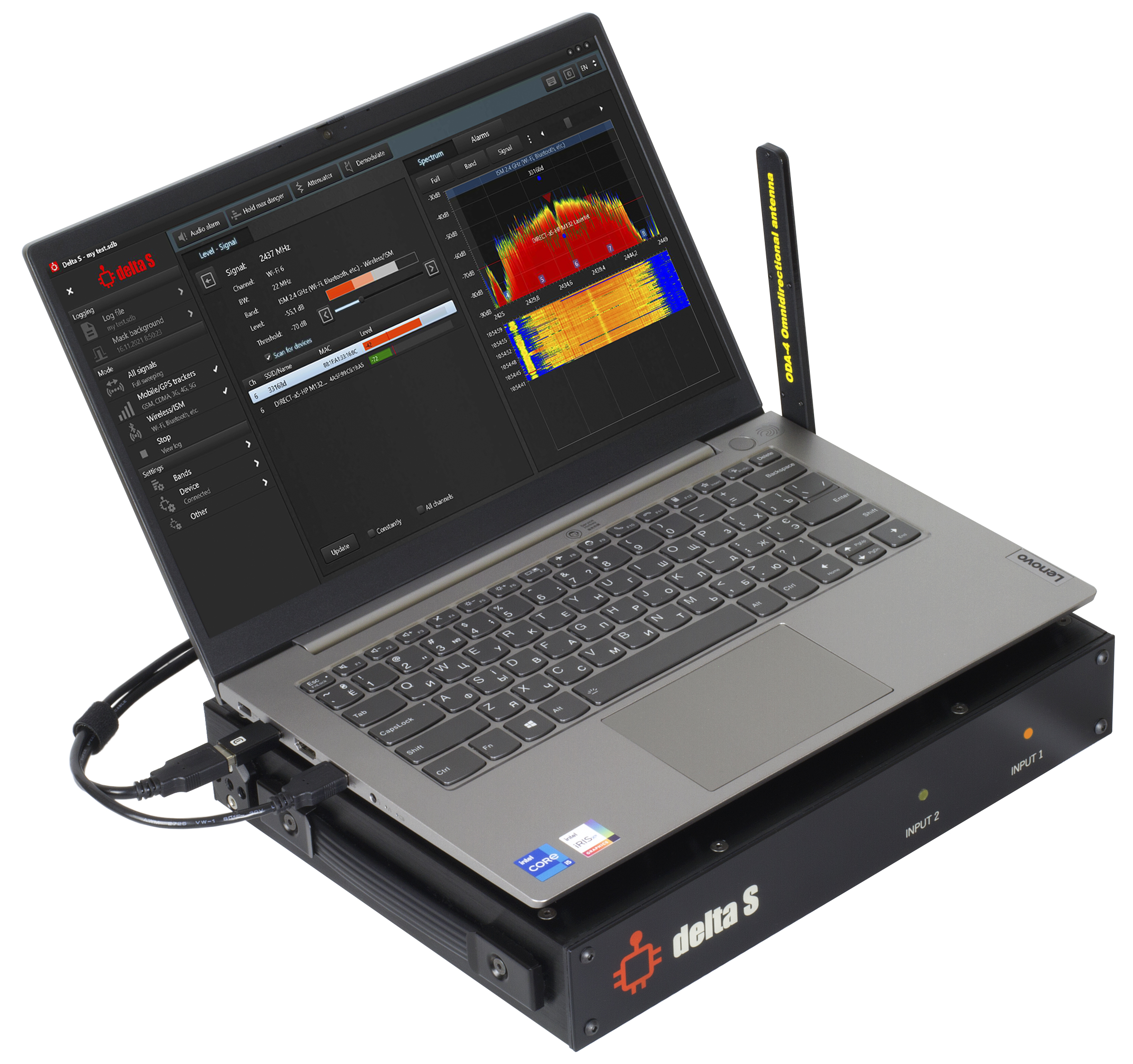 - В режимі “Безпровідні/ISM” Delta S швидко виявляє сигнали Wi-Fi, Bluetooth, ZigBee, DECT, LoRa та інші радіочастотні засоби